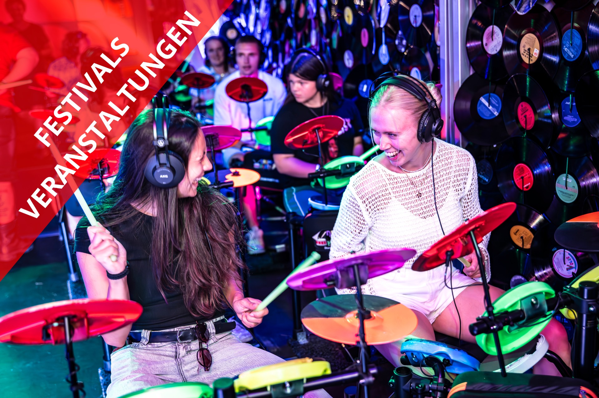 Eine Aktivität, bei der Jung und Alt hinter einem elektronischen Schlagzeug Platz nehmen und innerhalb von nur fünf Minuten ihren ersten eigenen Drumrhythmus spielen lernen.