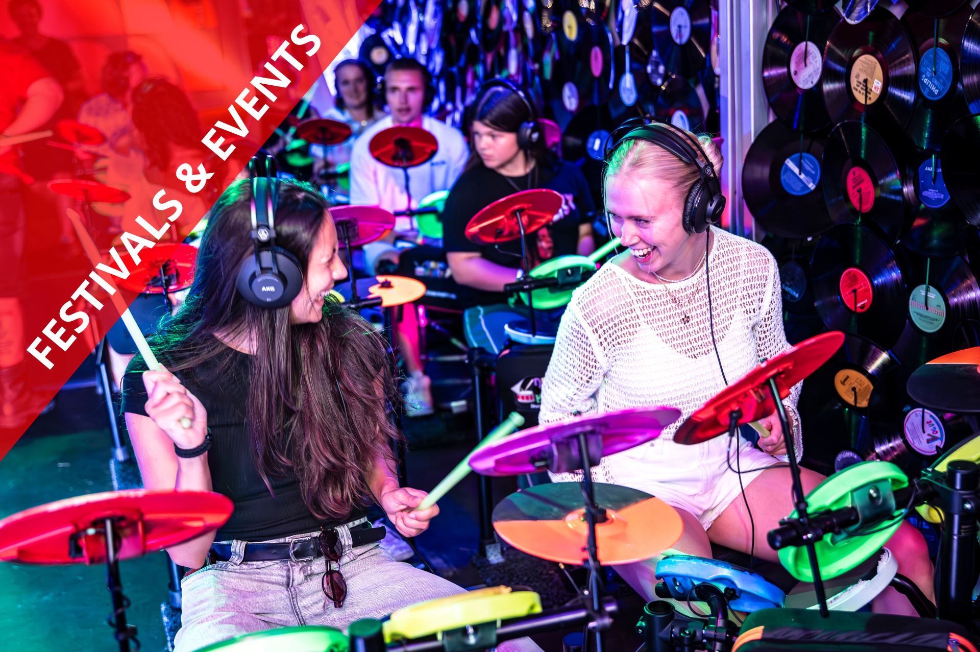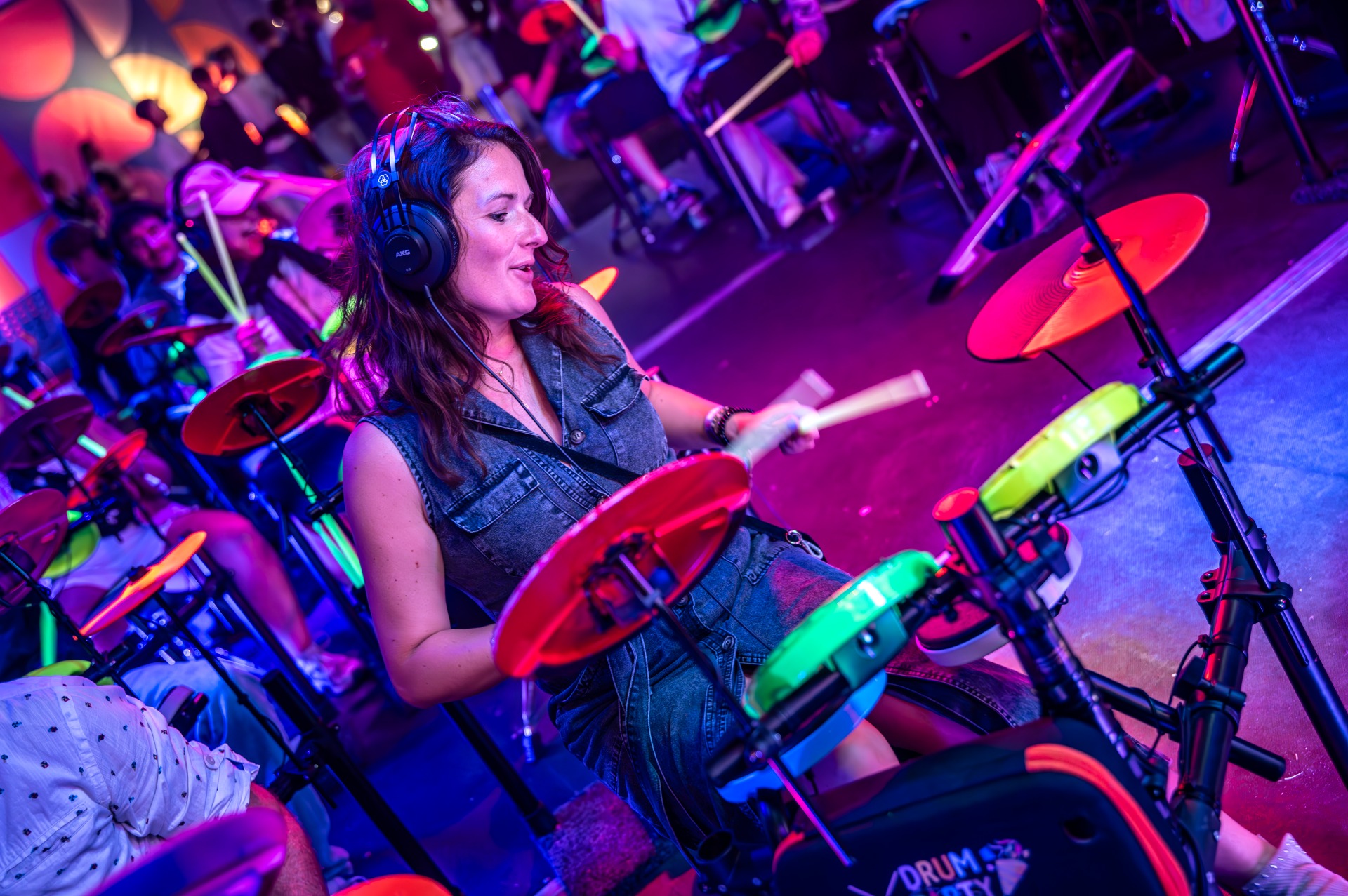 An experience where young and old can unleash their energy on electronic drum kits and play their first rhythm in just five minutes.